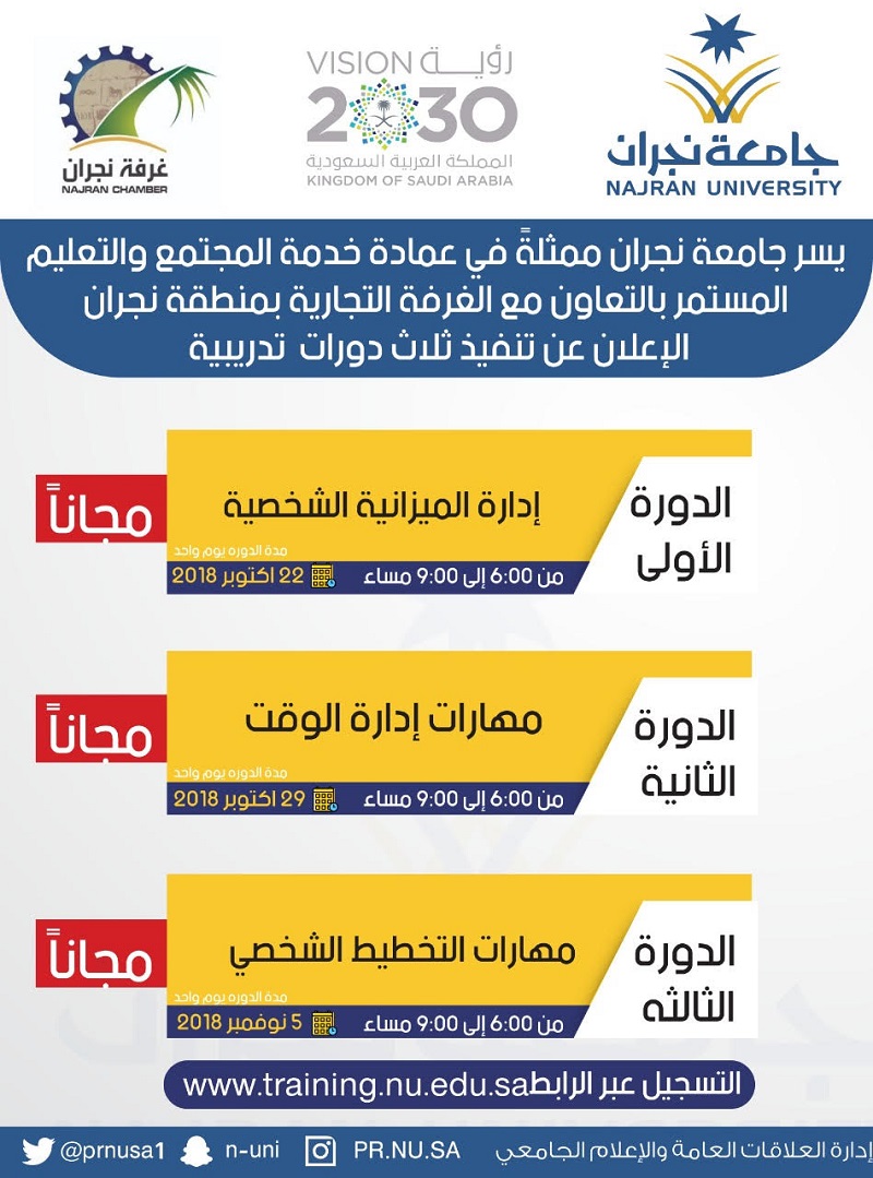 الجامعة تقدم برامج مجانية للمجتمع بالتعاون مع الغرفة التجارية deanship of community service amp continuing learning najran university